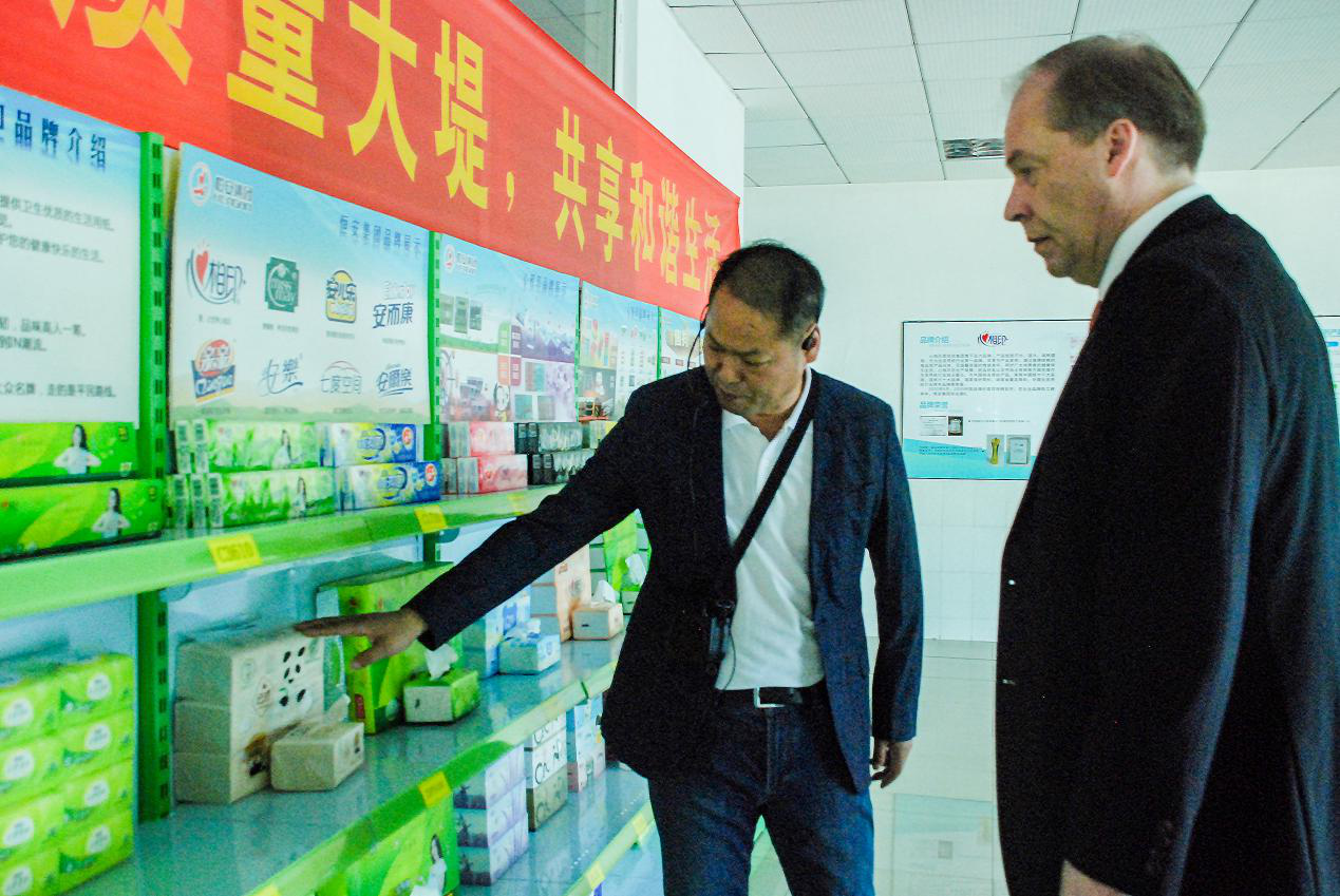 在参观球速体育(中国)纸业有限公司、福建球速体育家庭生活用品有限公司两个工厂时,肃海岚深切感受到了球速体育集团与芬兰的渊源:不远万里进口而来的芬兰木浆,通过芬兰公司提供的生产设备,生产出质量稳定的高档纸巾,走进全球亿万家庭。
