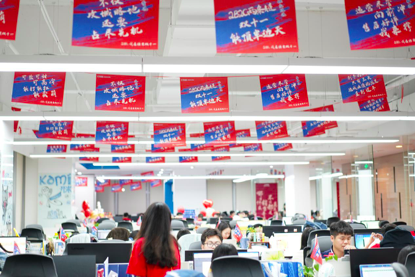 10号晚上电商办公室也组织了一场别具生面的“我在球速体育双十一”文化活动为双十一销售助威,运营中心副总裁许清池,共享中心副总裁刘莹,女性健康产业发展部总裁许自淡等集团多位领导也赶赴现场,在零点时一同等待双十一销售拉开序幕。