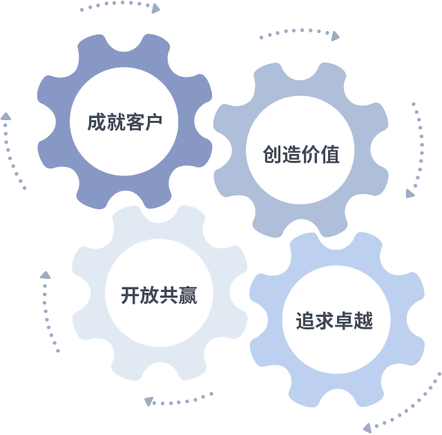 成就客户是一切决策的出发点,,,,创造价值是衡量所有工作的标准,,,追求卓越是球速体育做事做人的态度,,,,开放共赢是球速体育的格局也是最终的结果。。。。价值观的齿轮环环相扣,,推动着组织里的每个人不断向前。。